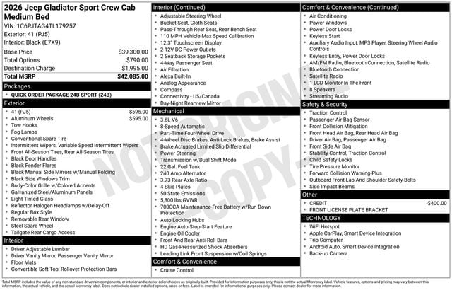 2026 Jeep Gladiator SPORT 4X4