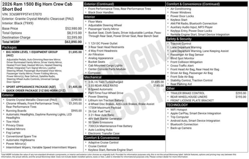 New 2026 Ram1500 BIG HORN CREW CAB 4X4 5'7 BOX