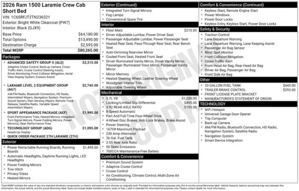 New 2026 Ram1500 LARAMIE CREW CAB 4X4 5'7 BOX