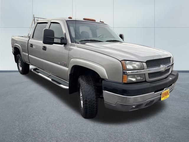 Recent Arrival! 2003 Chevrolet Silverado 2500HD LT 4WD Allison 1000 5-Speed Automatic Duramax 6.6L V8 Turbodiesel Light Pewter Metallic 4-Wheel Disc Brakes, 5 Amber Roof Marker Lamps, ABS brakes, Air Conditioning, AM/FM radio, Bumpers: chrome, Color-Keyed Carpeted Floor Covering, Driver door bin, Dual front impact airbags, Electric Rear-Window Defogger, Electronic Cruise Control w/Set & Resume Speed, Engine Block Heater, Front anti-roll bar, Front dual zone A/C, Front wheel independent suspension, Fully automatic headlights, Heavy-Duty Handling/Trailering Suspension Package, Heavy-Duty Rear Locking Differential, Heavy-Duty Trailering Equipment, Passenger door bin, Passenger vanity mirror, Power Programmable Door Locks, Power steering, Rear step bumper, Skid Plate Package, Solar-Ray Deep Tinted Glass, Split folding rear seat, Tachometer, Tilt steering wheel, Variably intermittent wipers, Voltmeter. Odometer is 111933 miles below market average!