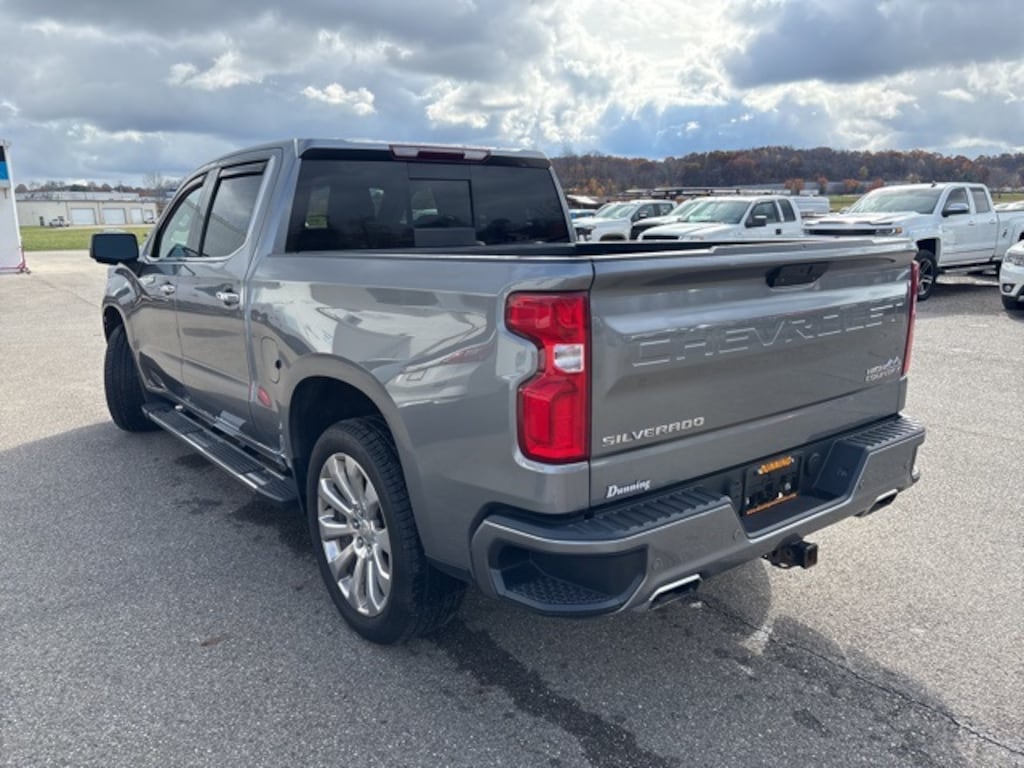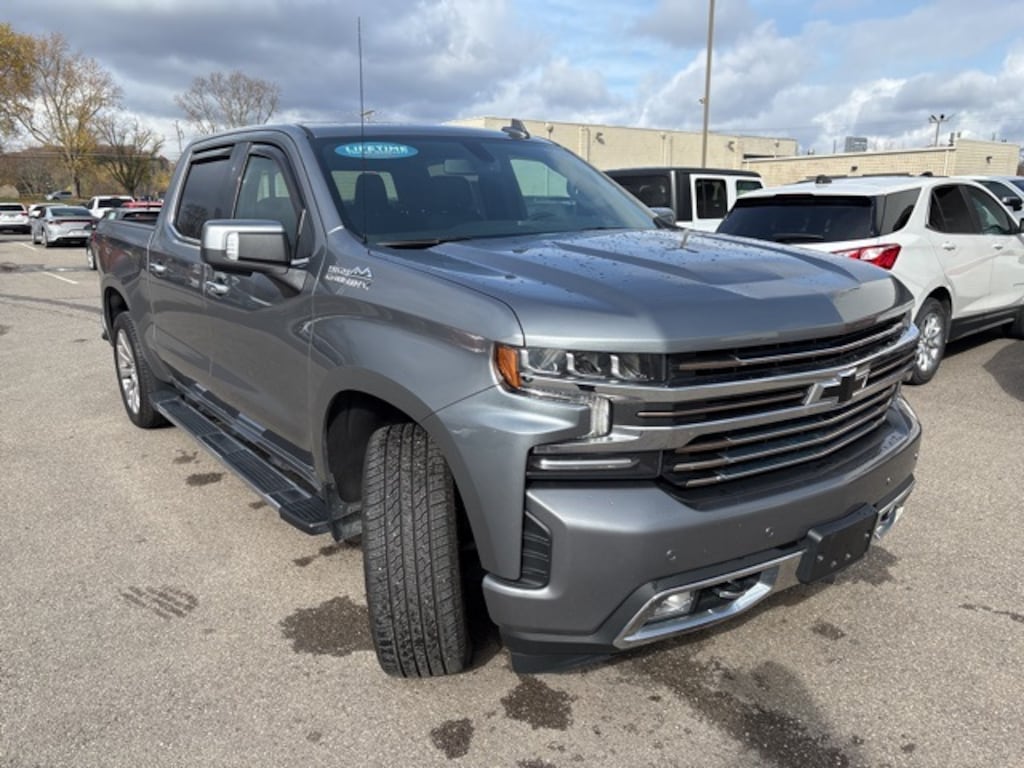 Recent Arrival! 2021 Chevrolet Silverado 1500 High Country 4WD 10-Speed Automatic EcoTec3 5.3L V8 Satin Steel Metallic 10-Way Power Driver Seat w/Lumbar, 10-Way Power Passenger Seat Adjuster w/Lumbar, 12-Volt Rear Auxiliary Power Outlet, 120-Volt Bed Mounted Power Outlet, 120-Volt Instrument Panel Power Outlet, 2nd Row Heated Outboard Seats, 3.23 Rear Axle Ratio, 4-Wheel Disc Brakes, 4G LTE Wi-Fi Hot Spot Capable, 7 Speakers, 8" Driver Information Center, ABS brakes, Advanced Trailering System, Air Conditioning, AM/FM radio: SiriusXM with 360L, Apple CarPlay/Android Auto, Auto-Dimming Inside Rear-View Mirror, Auto-dimming Rear-View mirror, Auto-Locking Rear Differential, Automatic temperature control, Auxiliary External Transmission Oil Cooler, Bluetooth® For Phone, Brake assist, Chevrolet Connected Access Capable, Chevytec Spray-On Black Bedliner, Chrome Assist Steps, Chrome Grille, Chrome Recovery Hooks, Color-Keyed Carpeting Floor Covering, Compass, Deep-Tinted Glass, Delay-off headlights, Driver door bin, Driver Memory, Driver vanity mirror, Dual Exhaust w/Polished Outlets, Dual front impact airbags, Dual front side impact airbags, Electric Rear-Window Defogger, Electrical Lock Control Steering Column, Electronic Cruise Control, Electronic Stability Control, Floor Mounted Center Console, Front anti-roll bar, Front Bucket Seats, Front Carpeted Floor Mats, Front Center Armrest, Front dual zone A/C, Front fog lights, Front LED Fog Lamps, Front reading lights, Front wheel independent suspension, Fully automatic headlights, Garage door transmitter, HD Rear Vision Camera, Heated Driver & Front Outboard Passenger Seats, Heated front seats, Heated Steering Wheel, Heated steering wheel, Heavy Duty Suspension, Hitch Guidance, Hitch Guidance w/Hitch View, Illuminated entry, Integrated Trailer Brake Controller, Keyless Open & Start, Lane Change Alert w/Side Blind Zone Alert, Leather Wrapped Steering Wheel, LED Cargo Area Lighting, Low tire pressure warning, Manual Tilt/Telescoping Steering Column, Memory seat, Navigation System, Occupant sensing airbag, OnStar & Chevrolet Connected Services Capable, Outside Heated Power-Adjustable Mirrors, Outside temperature display, Overhead airbag, Overhead console, Painted Mirror Caps, Panic alarm, Passenger door bin, Passenger vanity mirror, Perforated Leather Seat Trim, Power Door Locks, Power driver seat, Power Front Passenger Windows w/Express Up/Down, Power Front Windows w/Driver Express Up/Down, Power passenger seat, Power Rear Windows w/Express Down, Power Sliding Rear Window w/Rear Defogger, Power steering, Power Sunroof, Power Tailgate, Power windows, Preferred Equipment Group 3LZ, Premium audio system: Chevrolet Infotainment 3 Premium, Radio data system, Radio: Chevrolet Infotainment 3 Premium System, Rear Carpeted Floor Mats, Rear Cross Traffic Alert, Rear Dual USB Charging-Only Ports, Rear reading lights, Rear seat center armrest, Rear Wheelhouse Liners, Rear window defroster, Remote keyless entry, Remote Vehicle Starter System, Security system, SiriusXM w/360L, Speed-sensing steering, Split folding rear seat, Standard Tailgate, Steering Wheel Audio Controls, Steering wheel mounted audio controls, Tachometer, Telescoping steering wheel, Theft Deterrent System (Unauthorized Entry), Tilt steering wheel, Traction control, Trailering Package, Trip computer, Ultrasonic Front & Rear Park Assist, Universal Home Remote, Up-Level Rear Seat w/Storage Package, Variably intermittent wipers, Ventilated Driver & Front Passenger Seats, Ventilated front seats, Wheels: 22" x 9" Polished Aluminum, Wireless Charging, Wireless Phone Projection. Odometer is 5680 miles below market average!