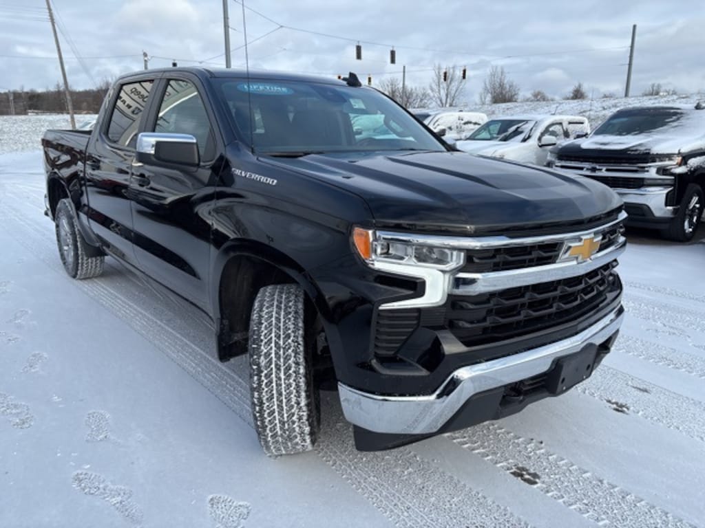 Recent Arrival! 2025 Chevrolet Silverado 1500 LT 4WD 10-Speed Automatic EcoTec3 5.3L V8 Black 10-Way Power Driver Seat w/Lumbar, 12.3" Multicolor Reconfigurable Digital Display, 120-Volt Bed Mounted Power Outlet, 120-Volt Interior Power Outlet, 220 Amp Alternator, 4-Wheel Disc Brakes, 40/20/40 Front Split-Bench Seat, 6 Speakers, 6-Speaker Audio System, ABS brakes, Air Conditioning, All-Star Edition, AM/FM radio: SiriusXM with 360L, Apple CarPlay/Android Auto, Auto-Locking Rear Differential, Automatic Emergency Braking, Automatic temperature control, Bluetooth® For Phone, Bumpers: chrome, Chrome Mirror Caps, Cloth Seat Trim, Color-Keyed Carpeting Floor Covering, Compass, Convenience Package, Driver door bin, Driver vanity mirror, Dual front impact airbags, Dual front side impact airbags, Dual Rear USB Ports (Charge Only), Dual-Zone Automatic Climate Control, Electric Rear-Window Defogger, Emergency communication system: OnStar, EZ Lift Power Lock & Release Tailgate, Following Distance Indicator, Forward Collision Alert, Front Center Armrest w/Storage, Front dual zone A/C, Front Frame-Mounted Black Recovery Hooks, Front Pedestrian Braking, Front reading lights, Front Rubberized Vinyl Floor Mats, HD Rear Vision Camera, Heated door mirrors, Heated Driver & Front Outboard Passenger Seats, Heated front seats, Heated Power-Adjustable Outside Mirrors, Heated Steering Wheel, Heated steering wheel, Hitch Guidance, Illuminated entry, Inside Rear-View Mirror w/Tilt, Integrated Trailer Brake Controller, IntelliBeam Automatic High Beam On/Off, Keyless Open & Start, Lane Keep Assist w/Lane Departure Warning, LED Cargo Area Lighting, Manual Tilt/Telescoping Steering Column, OnStar Services Capable, Outside temperature display, Overhead console, Passenger door bin, Passenger vanity mirror, Power door mirrors, Power driver seat, Power Front Windows w/Driver Express Up/Down, Power Front Windows w/Passenger Express Down, Power Rear Windows w/Express Down, Power steering, Power windows, Premium audio system: Chevrolet Infotainment 3 Premium, Radio data system, Radio: Chevrolet Infotainment 3 Premium System, Rear 60/40 Folding Bench Seat (Folds Up), Rear reading lights, Rear Rubberized-Vinyl Floor Mats, Rear step bumper, Rear window defroster, Remote keyless entry, Remote Start Package, Remote Vehicle Starter System, SiriusXM w/360L Trial Subscription, Split folding rear seat, Standard Suspension Package, Standard Tailgate, Steering Wheel Audio Controls, Steering wheel mounted audio controls, Tachometer, Teen Driver, Telescoping steering wheel, Theft Deterrent System (Unauthorized Entry), Tilt steering wheel, Tire Pressure Monitoring System, Trailering Package, Trip computer, Voltmeter, Wi-Fi Hot Spot Capable, Wrapped Steering Wheel.