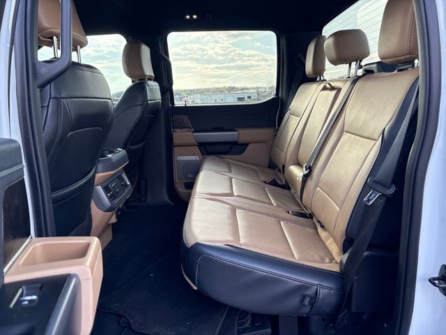 The exterior of the F-450SD is equally impressive, with a bold and rugged design that commands attention. The gleaming White paint and 19.5" forged polished aluminum wheels give this truck a striking appearance, while the dual rear wheels and powerful stance ensure it's ready to tackle any terrain.