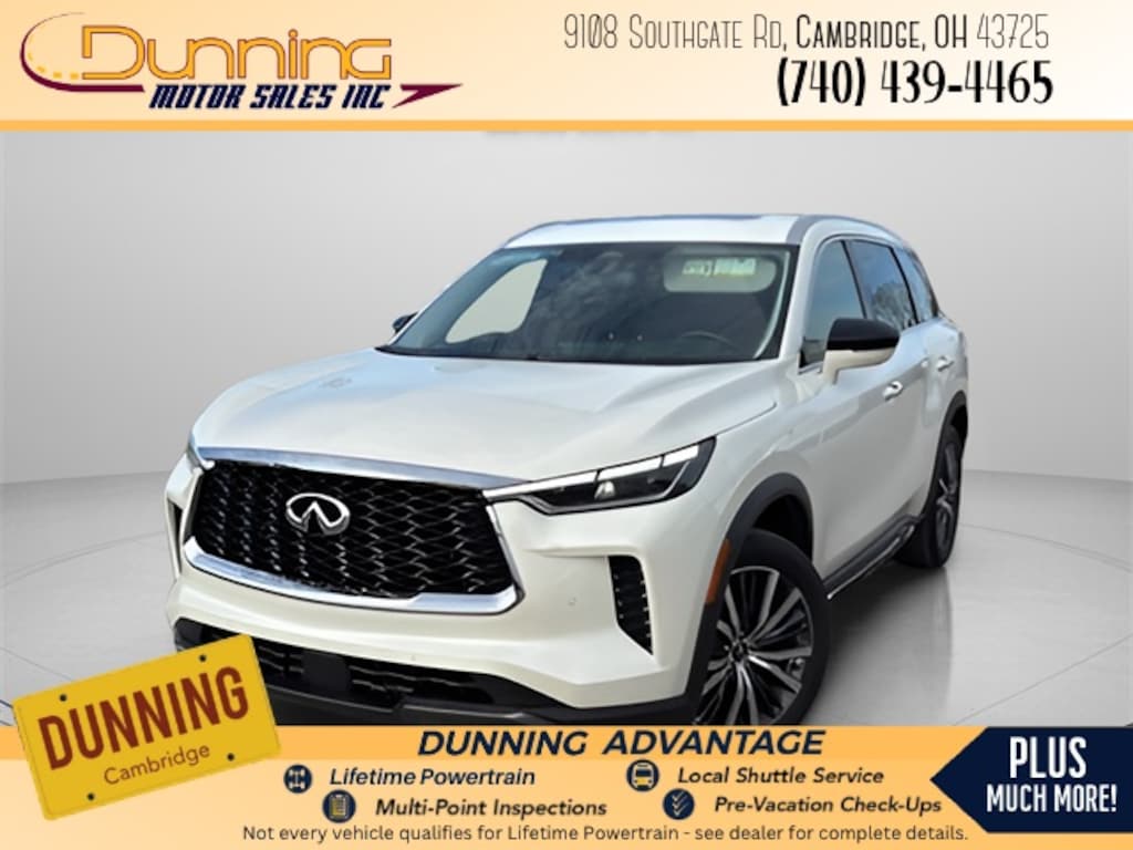Recent Arrival! 2023 INFINITI QX60 Sensory AWD 9-Speed Automatic 3.5L V6 Majestic White/Black Obsidian 17 Speakers, 3rd row seats: bench, 4-Wheel Disc Brakes, 4.334 Axle Ratio, ABS brakes, Air Conditioning, Alloy wheels, AM/FM radio: SiriusXM, Anti-whiplash front head restraints, Auto High-beam Headlights, Auto-dimming door mirrors, Auto-dimming Rear-View mirror, Automatic temperature control, Bose Performance Series 17-Speaker Sound System, Brake assist, Bumpers: body-color, Climate-Controlled Front Bucket Seats, Delay-off headlights, Driver door bin, Driver vanity mirror, Dual front impact airbags, Dual front side impact airbags, Electronic Stability Control, Emergency communication system, Four wheel independent suspension, Front anti-roll bar, Front Bucket Seats, Front Center Armrest, Front dual zone A/C, Front reading lights, Fully automatic headlights, Garage door transmitter: HomeLink, Heated door mirrors, Heated front seats, Heated rear seats, Heated steering wheel, Illuminated entry, Knee airbag, Leather Shift Knob, Leather steering wheel, Leather-Appointed Seating Surfaces, Low tire pressure warning, Memory seat, Navigation system: INFINITI InTouch Navigation, Occupant sensing airbag, Outside temperature display, Overhead airbag, Overhead console, Panic alarm, Passenger door bin, Passenger vanity mirror, Power door mirrors, Power driver seat, Power Liftgate, Power moonroof, Power passenger seat, Power steering, Power windows, Radio data system, Radio: AM/FM Audio System, Rain sensing wipers, Rear air conditioning, Rear anti-roll bar, Rear reading lights, Rear seat center armrest, Rear side impact airbag, Rear window defroster, Rear window wiper, Reclining 3rd row seat, Remote keyless entry, Security system, Speed control, Speed-sensing steering, Speed-Sensitive Wipers, Split folding rear seat, Spoiler, Steering wheel memory, Steering wheel mounted audio controls, Tachometer, Telescoping steering wheel, Tilt steering wheel, Traction control, Trip computer, Turn signal indicator mirrors, Variably intermittent wipers, Ventilated front seats, Wheels: 20" x 8J Luxury Machined Aluminum Alloy. Odometer is 1393 miles below market average!