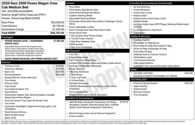 Experience the ultimate in off-road capability and comfort with this exceptional 2020 Ram 2500 Power Wagon. Boasting a powerful 6.4L Heavy Duty V8 HEMI engine paired with an 8-speed automatic transmission, this 4WD truck is ready to tackle any terrain with confidence.