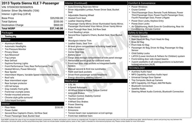 Discover the ultimate family-friendly ride in this 2013 Toyota Sienna XLE 7 Passenger. With its spacious interior, advanced technology, and impressive performance, this Sienna is the perfect companion for your everyday adventures.
