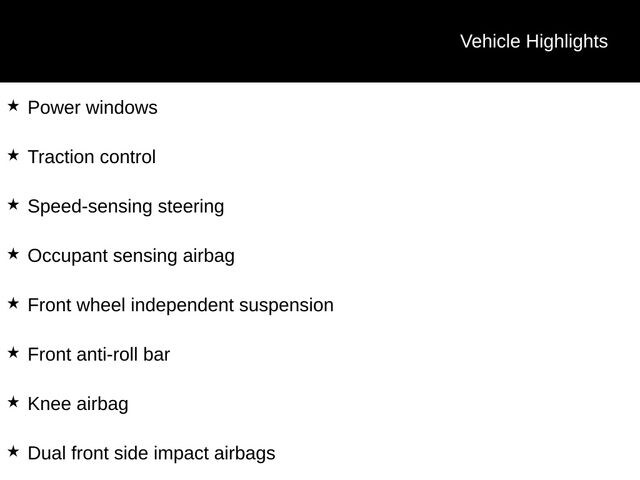 - Dual front and side impact airbags, ABS brakes, and electronic stability control for your safety